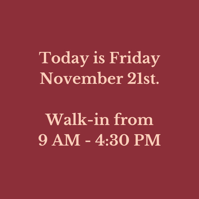 Our walk-in hours are updated daily. Please verify before making a long drive!
